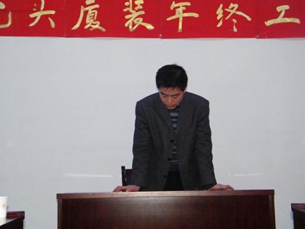 隨著新年鐘聲的臨近,我司于2010年12月31日,下午13:30分在公司三樓會(huì)議室召開(kāi)了2010年年終工作總結(jié)及優(yōu)秀員工表彰大會(huì)。此次會(huì)議目的既是讓大家對(duì)公司成立以來(lái)的熬人業(yè)績(jī)、明年的整體發(fā)展趨勢(shì)、任務(wù)指標(biāo),以及公司對(duì)每位職工工作的肯定做了一一講解。營(yíng)造全體員工團(tuán)結(jié)凝聚、以廠為家、共同奮進(jìn)的氛圍,回顧過(guò)去我司做出了當(dāng)年建廠、當(dāng)年投產(chǎn)、當(dāng)年銷(xiāo)售的令人矚目成就。通過(guò)此次會(huì)議,公司全體同仁堅(jiān)信在大家共同努力下,我司產(chǎn)品必能遍布內(nèi)蒙古中西部及陜北地區(qū),并且在所有同行當(dāng)中永居鰲頭,成為全內(nèi)蒙、全國(guó)、全世界第一品牌。